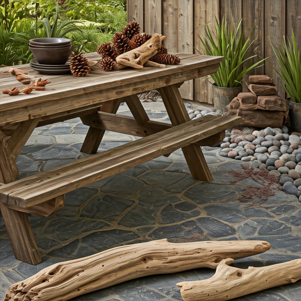 Taşlar, ağaç dalları, çakıl taşları gibi doğal malzemeleri kullanarak terasınıza doğal bir görünüm kazandırın. Bu malzemeler ucuzdur ve çevre dostu bir seçenek sunar.